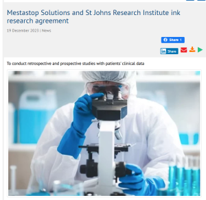 Mestastop Solutions and St Johns Research Institute ink research agreement